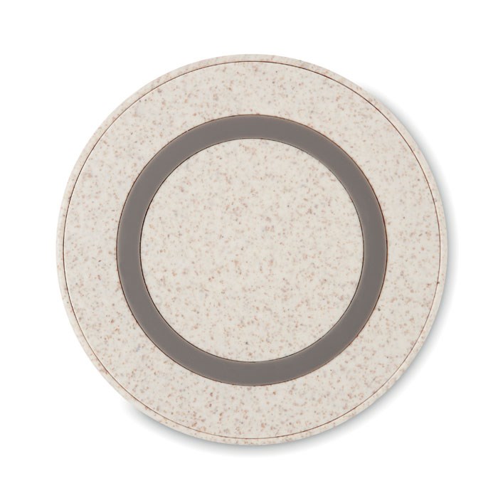 Draadloze oplader in tarwestro (35%) en ABS (65%). Verbind het apparaat, plaats de smartphone erop en het opladen begint. Uitgang: DC5V/1A (5W).