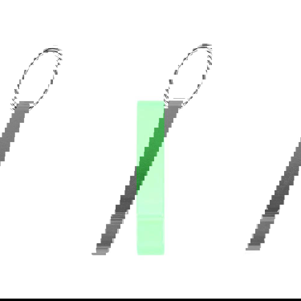 Aluminium sleutelhanger met gecombineerde fles- en blikopener. Lichtgewicht, duurzaam en ideaal voor dagelijks gebruik.