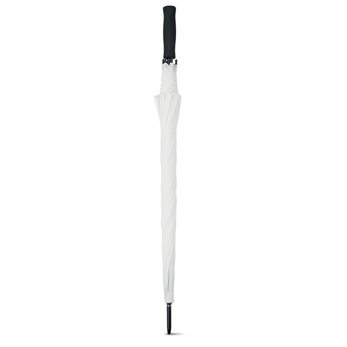 27 Inch paraplu van pongee met EVA handvat. Zwart metalen frame met kunststof zwarte uiteinde. Opent automatisch.