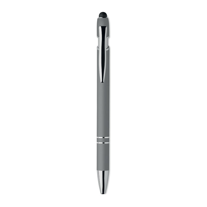 Stylus balpen van gerecycled aluminium met rubberen afwerking. Blauwe inkt.