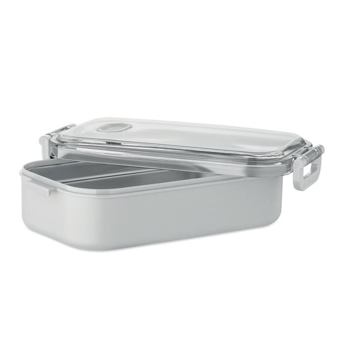 Lunchbox van PP met een extra binnenlaag van gerecycled roestvrij staal. Het luchtdichte AS-deksel houdt het eten vers en veilig tijdens vervoer. Inhoud: 750 ml zonder bakje, 650ml met bakje.