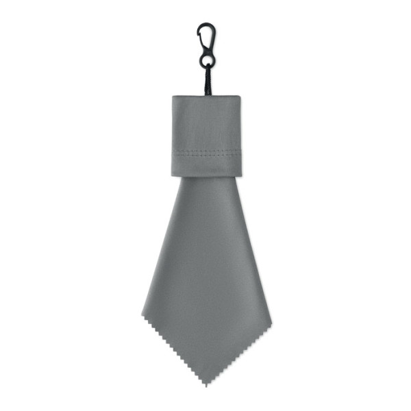 RPET reinigingsdoekje met vast zakje om in op te bergen, inclusief PP plastic ophanghaak.meer