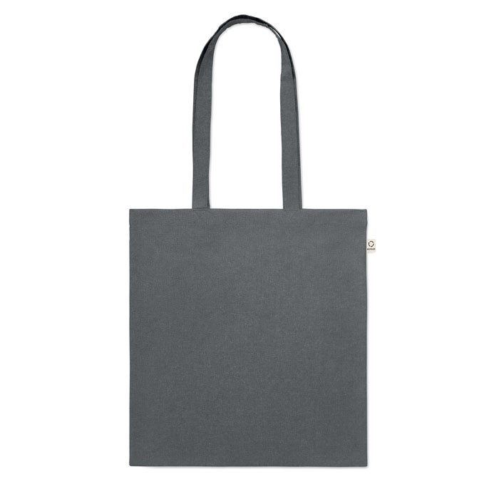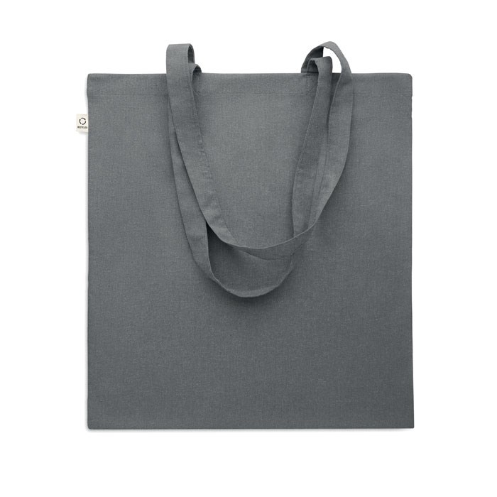Gerecyclede pre-consumer katoenen boodschappentas (70% gerecycled katoen en 30% RPET) met lange hengsels. 140 gr/m². Dit artikel kan krimpen na het afdrukken.