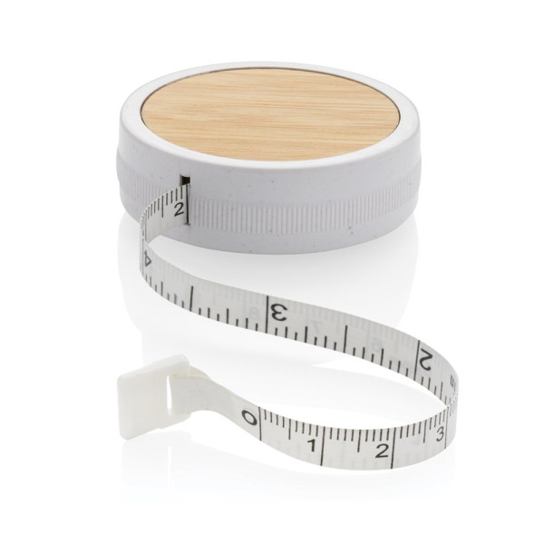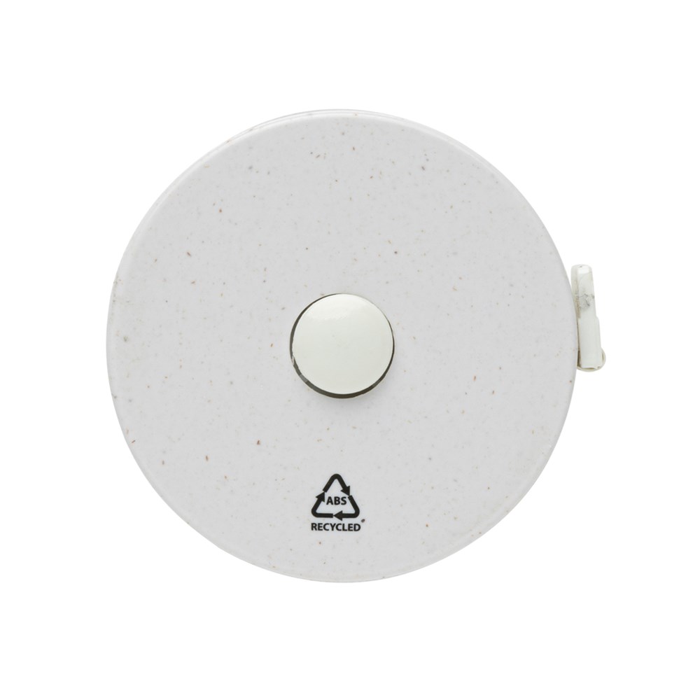1,5m/60inch gerecycled plastic meetlint met knop om het lint terug te trekken. Geschikt voor zowel fitness en mode. De behuizing is gemaakt van RCS-gecertificeerd gerecycled ABS plastic, glasvezel en FSC® 100% bamboe. Totale gerecyclede inhoud: 64% op basis van het totale gewicht van het item. RCS-certificering zorgt voor een volledig gecertificeerde toeleveringsketen van de gerecyclede materialen. Het lint is 8 mm breed en intrekbaar met een knop. Verpakt in FSC® mix verpakking.